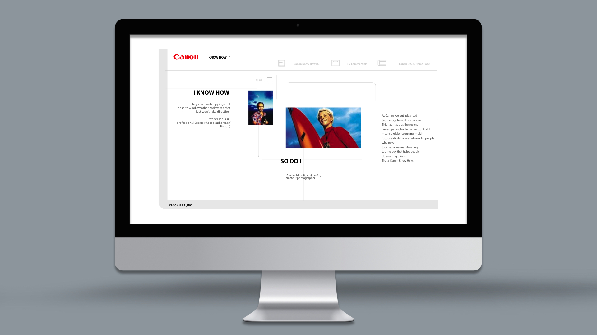 Next came Canons KnowHow ad campaign (shown left.). The aim here was to demonstrate how Canon made advance technology and systems easy to use for the end user.