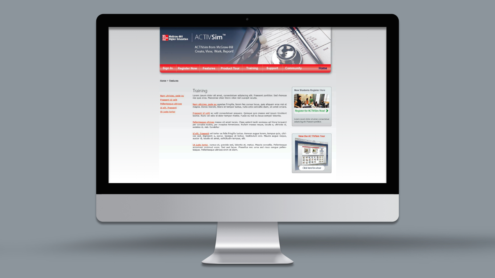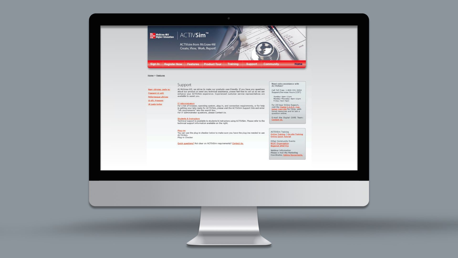 ActiveSim is a online nurse training app. It was a pretty complicated step based simulation app that graded in realtime as students progressed through the screens. This job was challenging because there were also a number of tool tips and instructions that had to be shown dynamically on certain mouse actions without obscuring the main page content